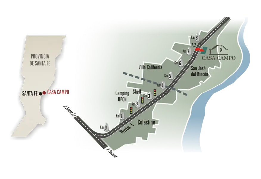 Situado sobre Ruta Provincial Nº 1, a 12 km de la Ciudad de Santa Fe. A metros del ingreso a San José del Rincón.