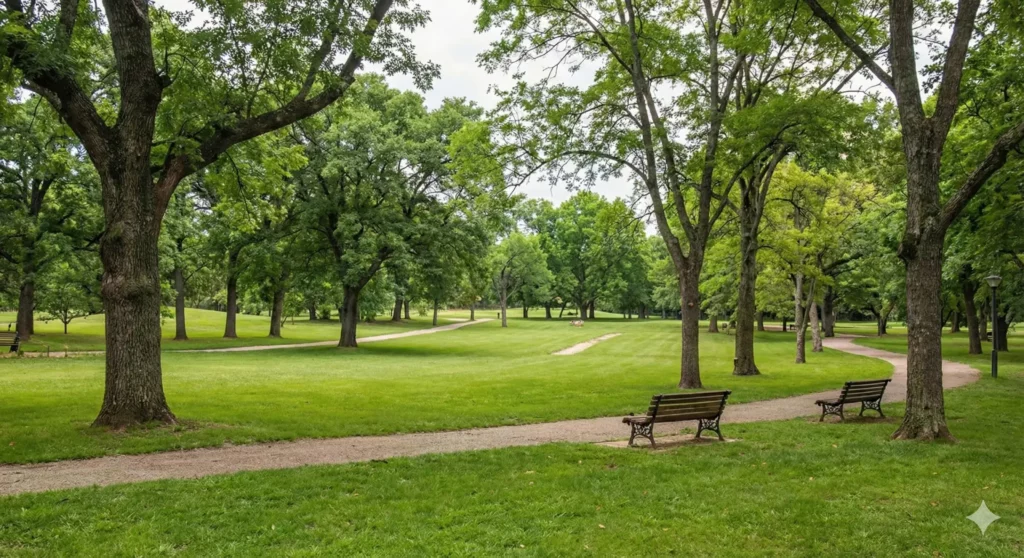 Amplio parque rodeado de naturaleza, pensado para el descanso y el disfrute al aire libre.