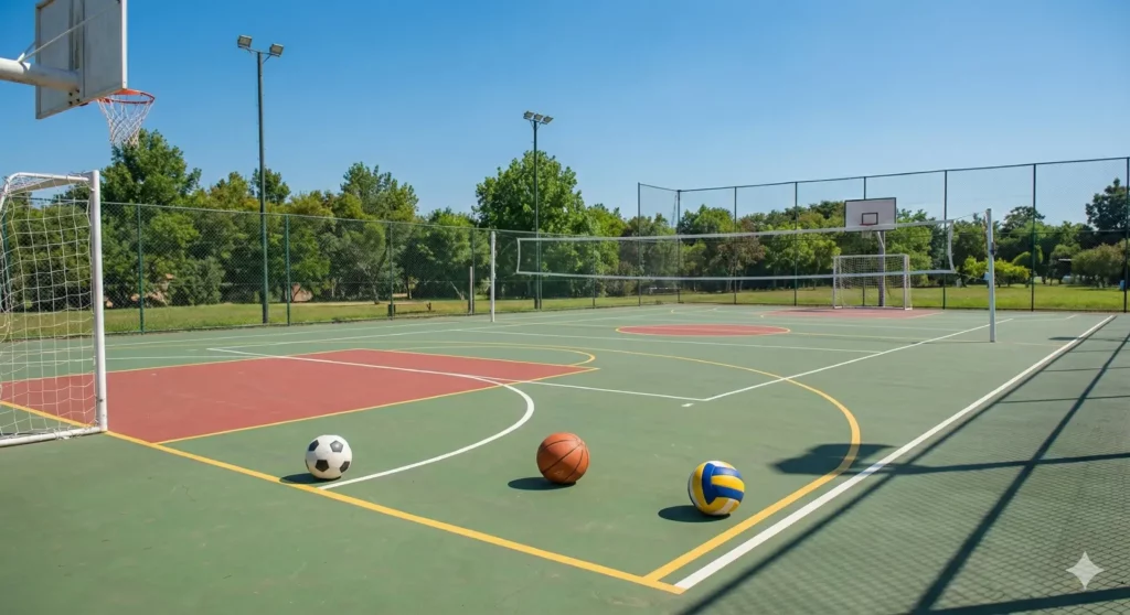 Espacio multiuso para fútbol, básquet y vóley en un mismo predio.